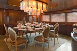 | | | | | | | | | Length | | 43m | | Beam | | 7m39 | | Draft | | 3m | | | Built | | 1981 Benetti, Italy, refitted 2009 | | Model | | Benetti navetta 43 | | | Hull | | Steel | | | Speeds | | 12 - 14 knots | | | Guests | | 9 to 10 guests in 5 cabins | | | Cabins | | 2 doubles, 2 twins, 1 single with pullman | | | Crew | | 8 | | Summer 2013 | | Riviera, Corsica, Sardinia, Naples, Sicily, Croatia, Greece | | | Week charter rate | | EUR 80 000 low season, EUR 85 000 high season + expense | | | Taxes | | Please enquire regarding applicable taxes | | | | | | All details believed to be correct but neither guaranteed nor contractual, for informational purpose only. Offered for charter subject to being available, to any charter rate change by the owners and under our terms of business Equipment, toys inventory, crew, financial and tax details may be subject to changes without prior notice | | | | | |