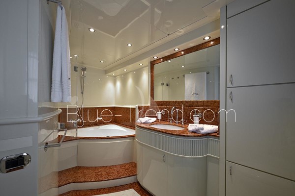 DON CIRO elegant airy salon has a 2m ceiling height. The comfortable lounge area is perfect for pre-dinner drinks. How about a formal dinner inside to celebrate a special occasion and enjoy Chef Lorenzo's culinary delights. DON CIRO Master Stateroom is located on main deck. It boats a king size bed, a settee, ensuite facility with a jacuzzi bath tub, washbasin, bidet and wc.