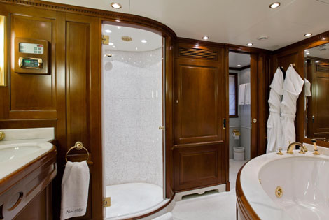 | | | | | | If you do not want to charter a mega- yacht but want a Master Suite on main deck with superb ensuite bathroom, then NEW STAR is your best option. This Benetti Tradition also boats an exceptional upper aft deck with a bar, al-fresco dining and relaxing area.